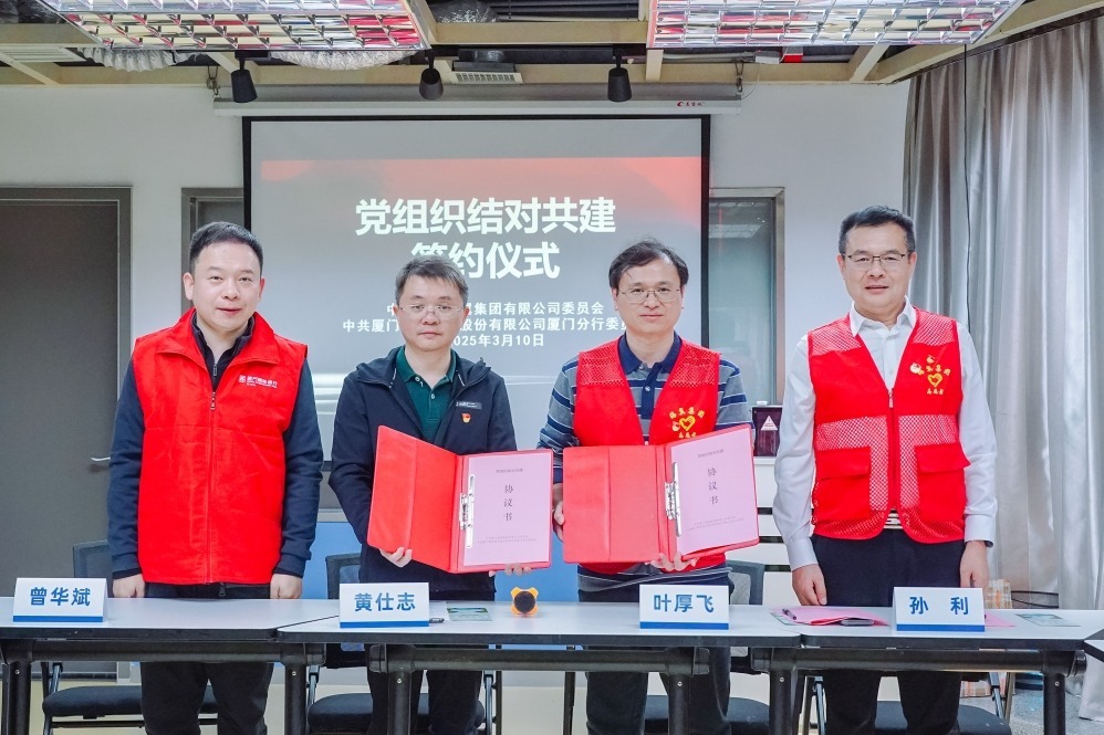 會(huì)上,雙方代表簽署了黨團(tuán)共建協(xié)議書。海翼集團(tuán)黨委副書記、紀(jì)委書記、工會(huì)主席葉厚飛表示,海翼集團(tuán)將以黨團(tuán)共建為紐帶,圍繞“強(qiáng)鏈拓圈、向新求質(zhì)”年度工作主題,進(jìn)一步加強(qiáng)雙方互動(dòng),創(chuàng)新合作模式,推動(dòng)雙方業(yè)務(wù)合作更加緊密,切實(shí)將黨建成果轉(zhuǎn)化為服務(wù)雙方高質(zhì)量發(fā)展的實(shí)際成效,構(gòu)建“共建、共享、共贏”銀企合作新格局。