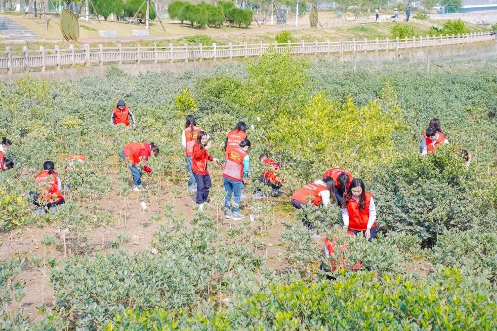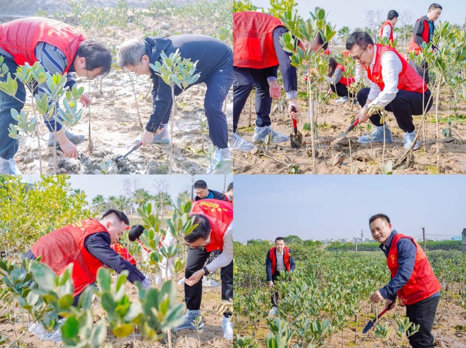 座談會(huì)后,志愿者代表們來(lái)到紅樹林種植灘涂區(qū)種植紅樹林,大家分工協(xié)作、密切配合,經(jīng)過(guò)半個(gè)小時(shí)的辛勤勞動(dòng),50余株紅樹林幼苗整齊地矗立在林地中,成為涵養(yǎng)生態(tài)、美化環(huán)境、保護(hù)氣候的“綠色衛(wèi)士”。